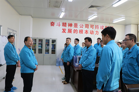 | ??????? 2月11日,是公司春節過后上班的第一天。上午9時許,公司董事長李智超、總經理付勇帶領領導班子成員深入各職能部門、各事業部看望廣大員工。公司領導一行步伐鏗鏘,每到一處都向廣大職工送去新年的祝福,并簡要介紹了公司發展形勢,勉勵廣大職工在新的一年繼續發揚奮斗精神,推動各項工作再上新臺階。 |