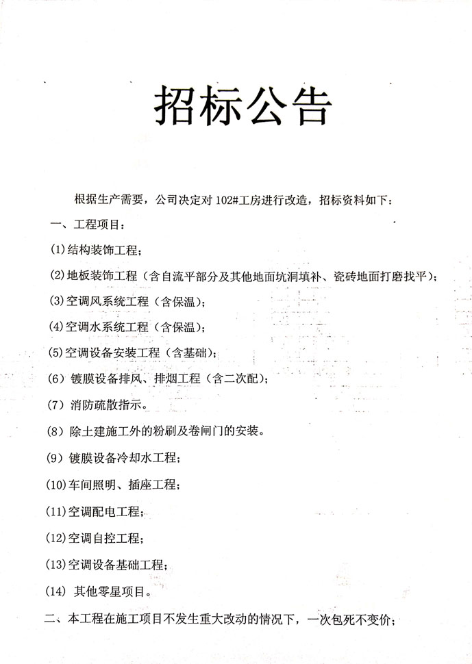 - (2022-09-29)光電新區三期廠房一層裝修施工的招標公告
