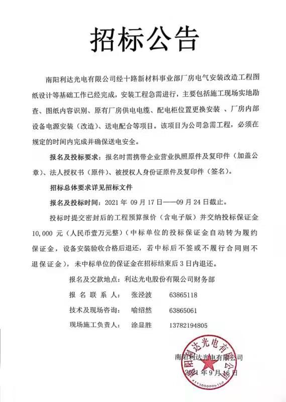 - (2022-09-29)光電新區(qū)三期廠房一層裝修施工的招標公告