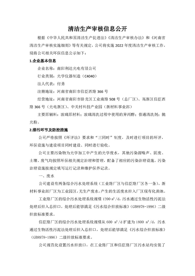 清潔生產(chǎn)審核信息公開(kāi)