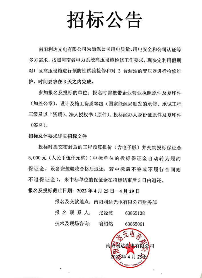 - (2022-09-29)光電新區三期廠房一層裝修施工的招標公告